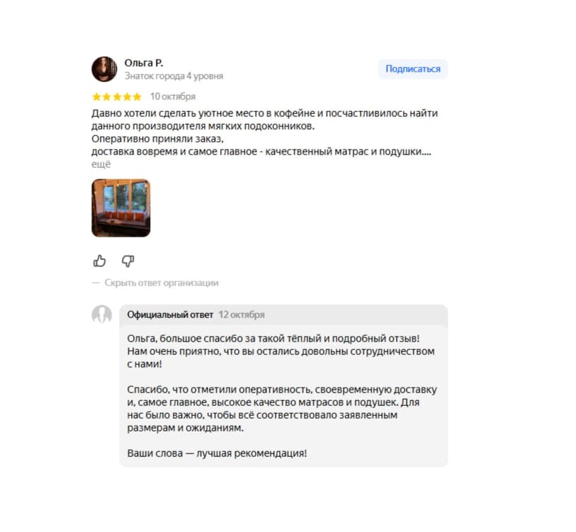 Пример матраса на подоконник на заказ